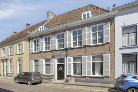 We nemen de trap in de hal en bereiken de ruime overloop op de eerste verdieping. Deze ruimte beschikt over vaste kasten, een praktische bergruimte en de CV-opstelling. Aan de voorzijde bevinden zich twee slaapkamers. Aan de achterzijde ligt de hoofdslaapkamer, voorzien van vaste kasten en een fraai uitzicht over het perceel. Deze woonlaag is verzorgd afgewerkt met een eiken parketvloer en keurige wand- en plafondafwerking, wat de stijlvolle lijn van de woning voortzet.